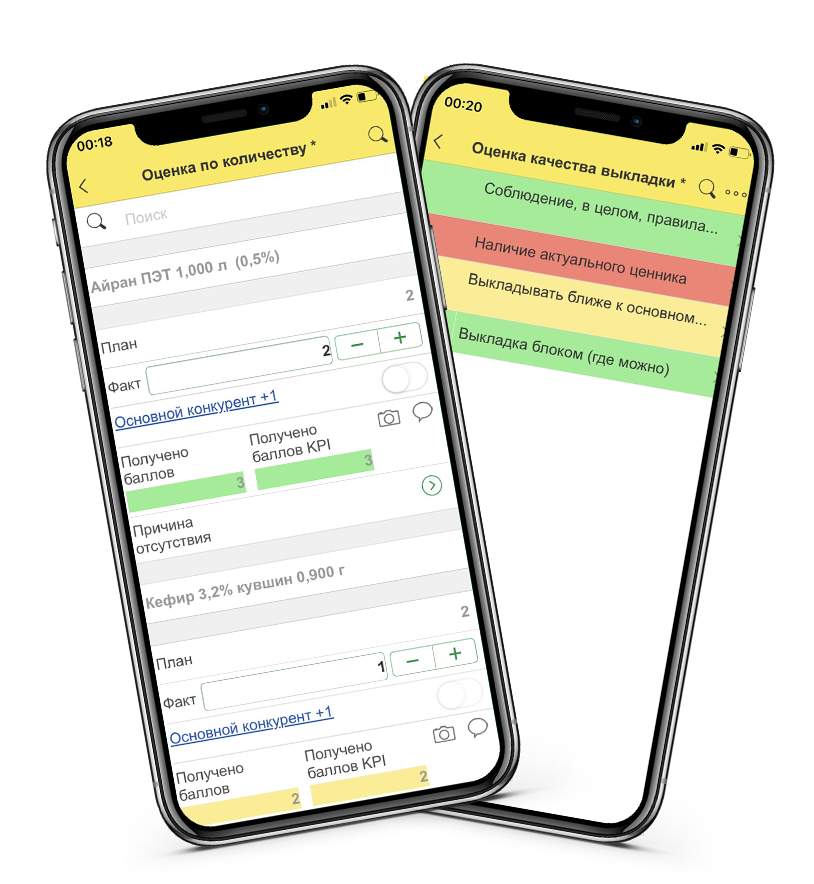 The application includes checklists compiled with the participation of merchandising professionals: for controlling the availability of the entire range of goods, compliance with the rules of display, the required number of faces, the quality of arrangement, placement of promotional materials and price tags.